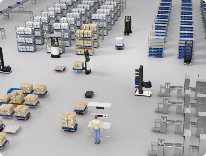 景:从基于潜伏车型的可移动货架库,到基于托盘存储的高架库,巷道库,堆叠库。从基于料箱存储的高架库,到各种类型仓库的混合存储。得益于全新v4.0开放架
