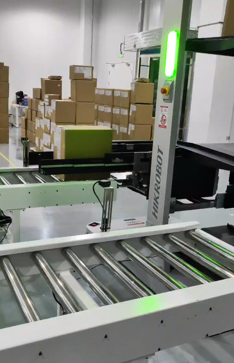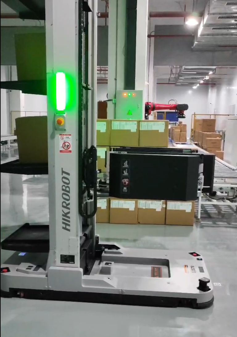 系统深度融入生产流程:从铝箔袋、料盘半成品的自动入库,到清洗环节与机械臂的精准对接,再到成品打包后的智能分类存储与出库,实现了全流程物料流的自动化闭环。特别在出库环节,CTU能按指令从不同库区准确拣选不同尺寸纸箱,潜伏AGV则协同机械臂完成成品码垛后的最终搬运。