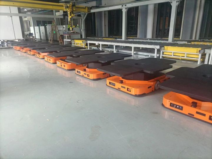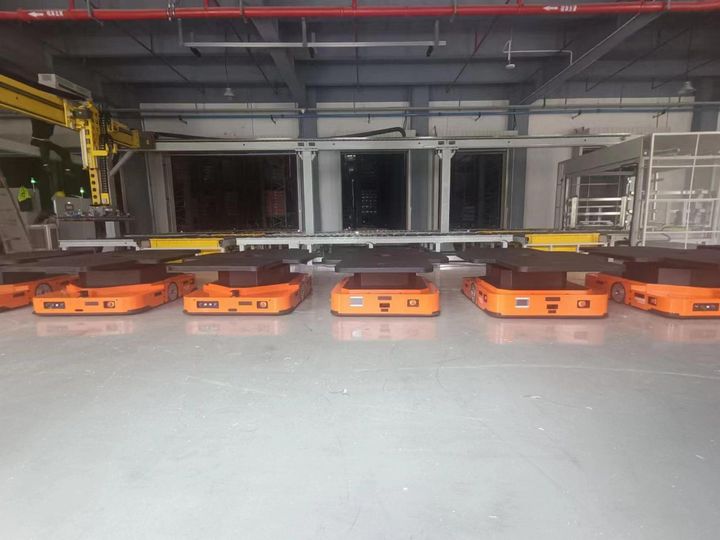 项目情况:该工厂投入75台MR-Q8车型,用于立库搬运。对接输送线,节省人力投入。出入库每小时各20托盘