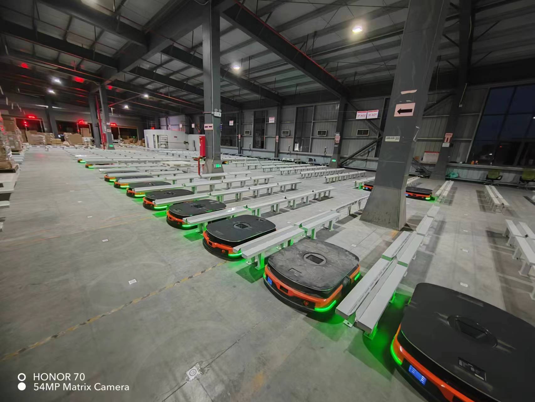 30台潜伏式AGV。项目情况:AGV对接输送线将成品入库及出库。降低人工搬运成本